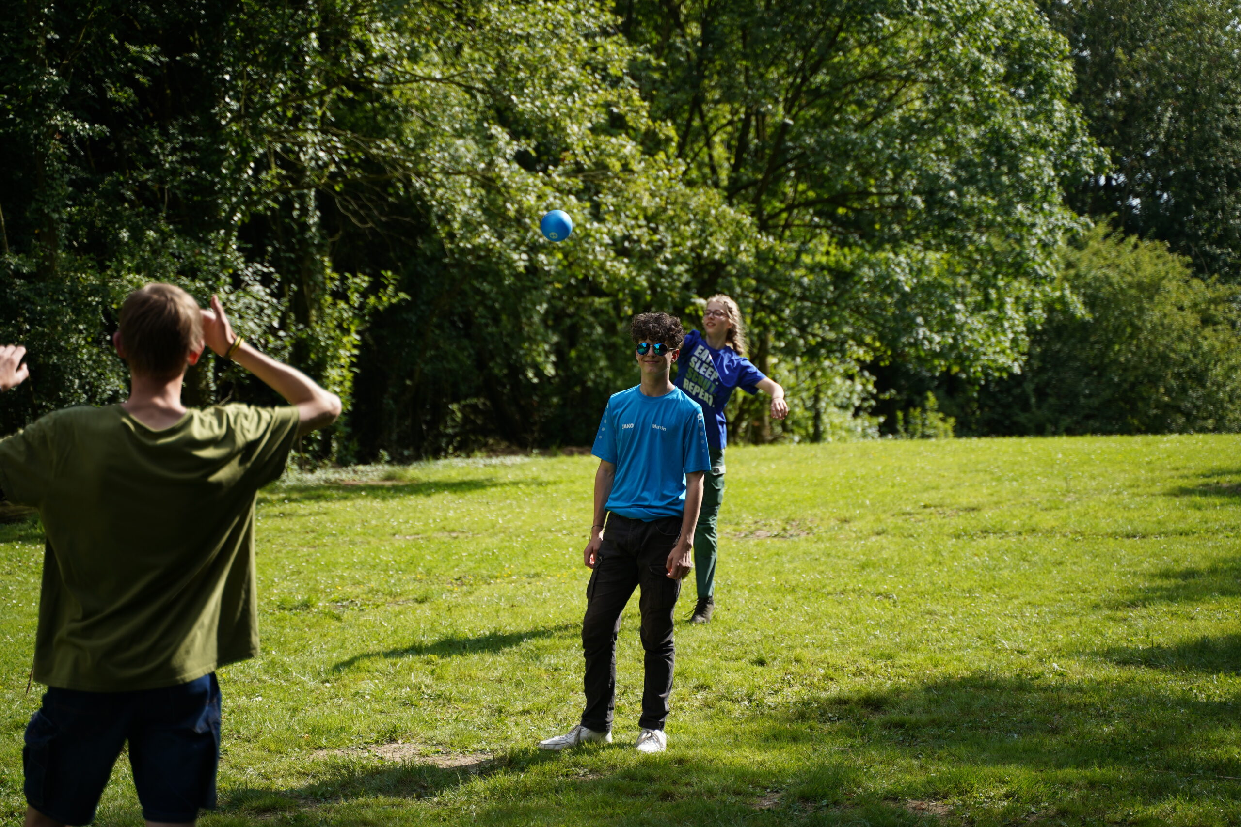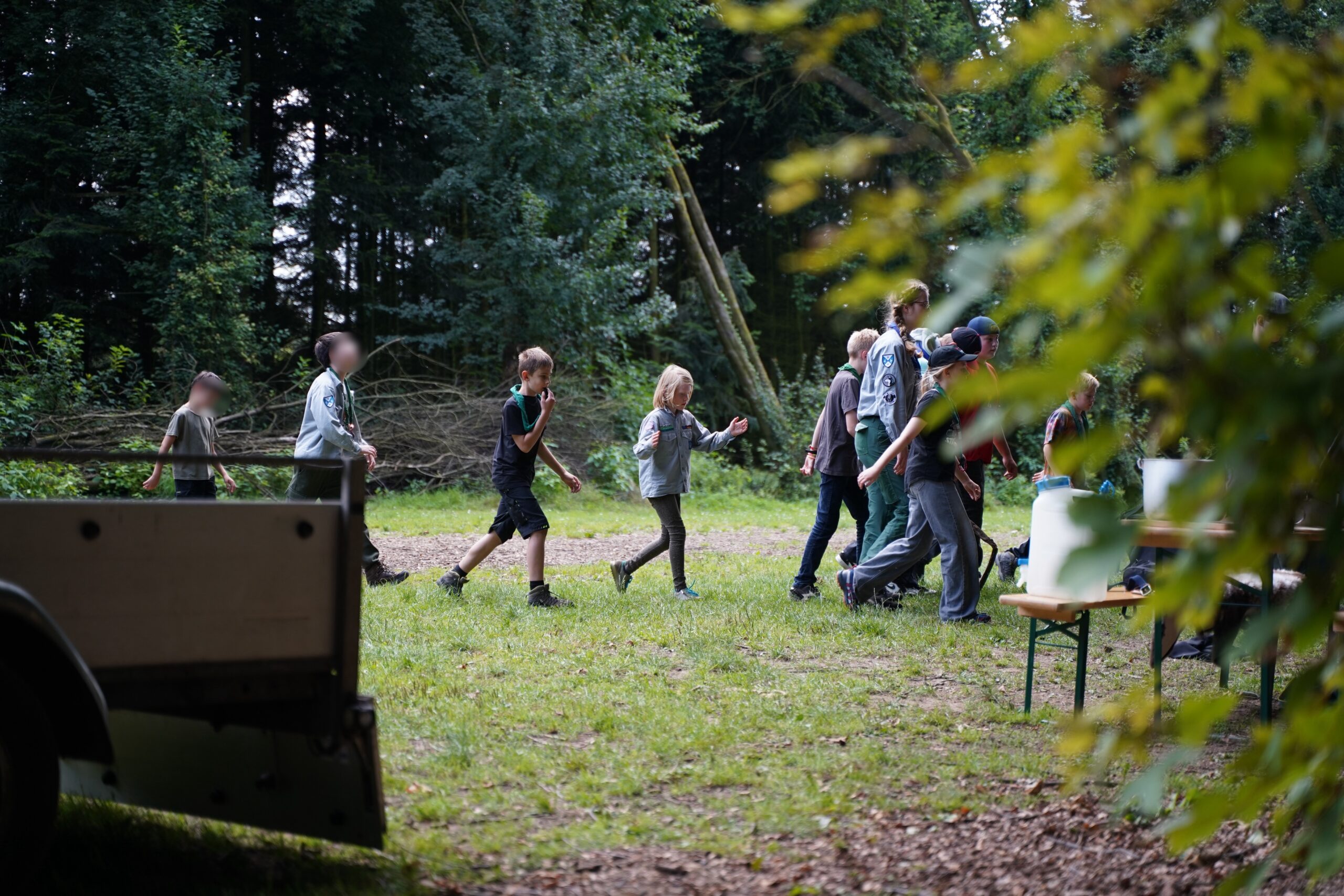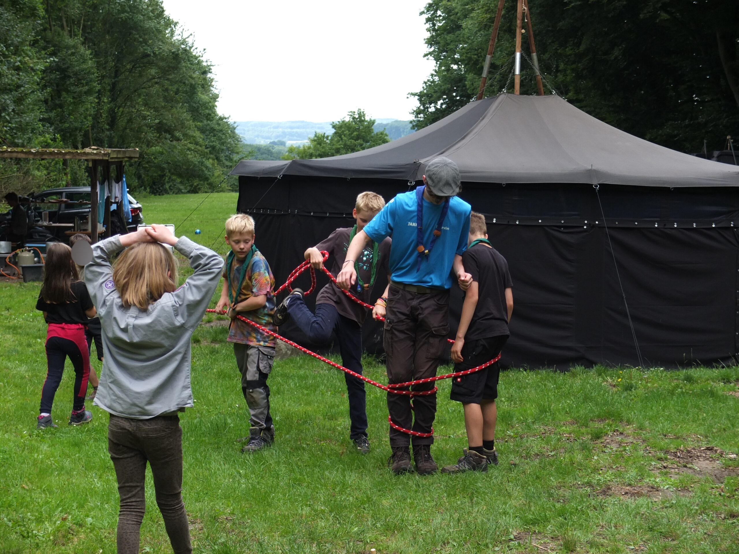 Nach einem stärkenden Frühstück ging es am Donnerstag los mit einem spannenden Spion Spiel, bei dem die Kinder in zwei Teams verschiedene Stationen bewältigen mussten, um den gestohlenen Schatz wiederzufinden. Nach dem Mittagessen veranstalteten wir eine Wasserschlacht, bei der nicht nur die Kinder, sondern auch die Gruppenleitungen ordentlich nass wurden. Als sich die erste Aufregung etwas gelegt hatte, wurden verschiedene Workshops angeboten, von Völkerball spielen bis zu kleinen Mini-Halstüchern basteln für die Kluft aber auch Armbänder knüpfen.