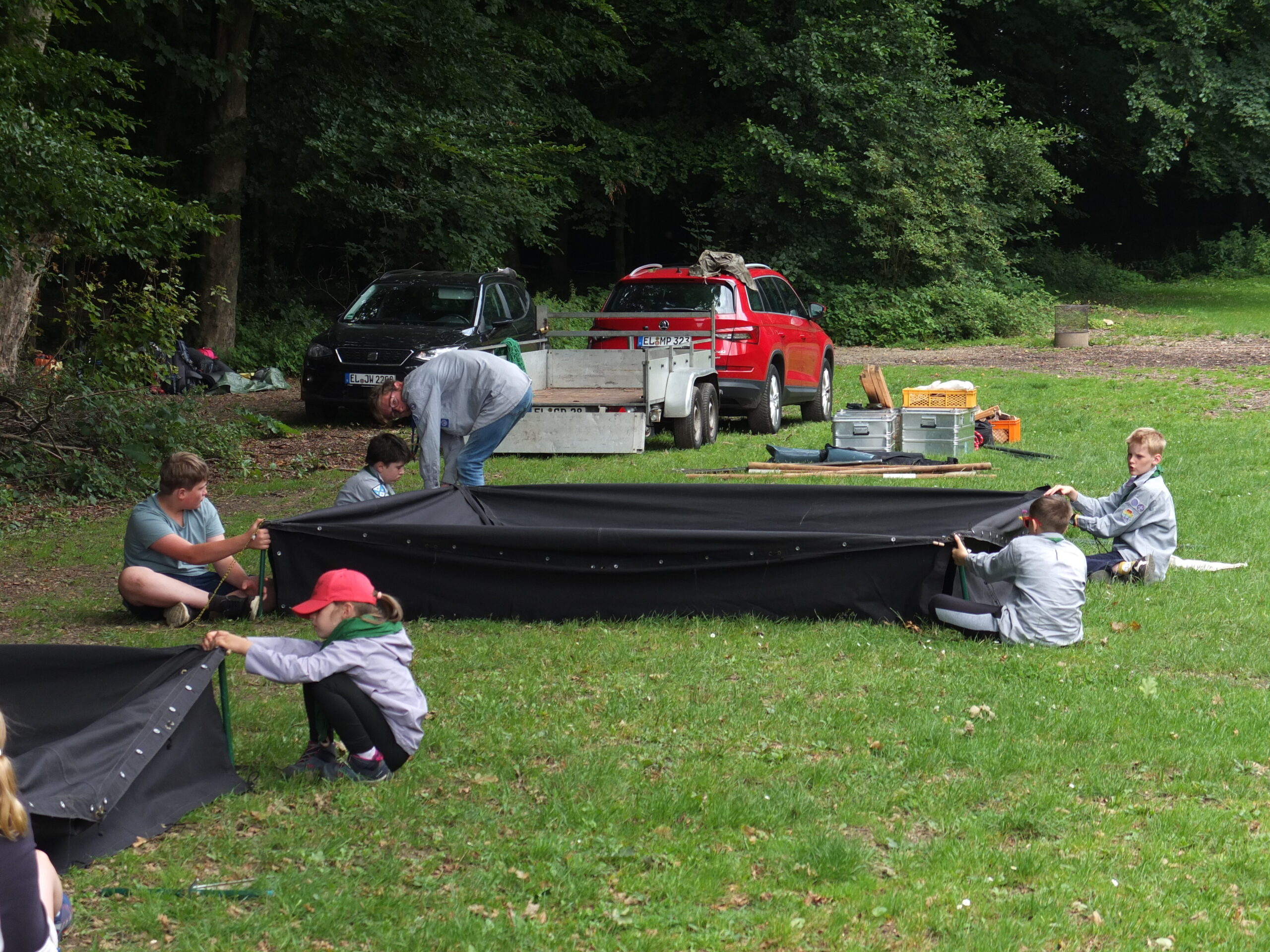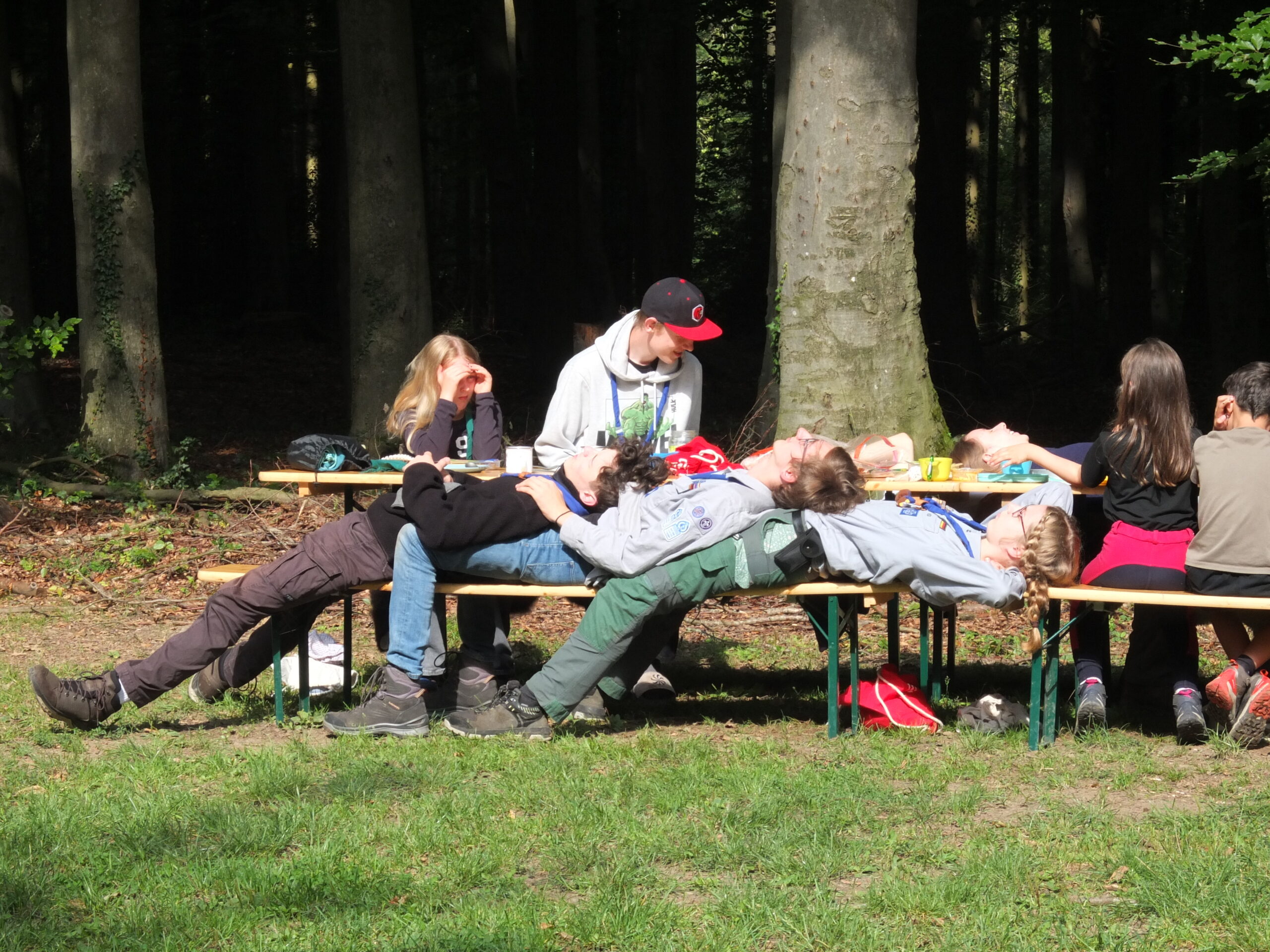 Vom 23. bis 27. Juli 2025 haben wir unser diesjähriges Sommerlager auf einem Lagerplatz in der Nähe von Osnabrück verbracht. Am Mittwoch reisten wir mittags mit dem Zug an und nach der Ankunft starteten wir direkt mit dem Aufbau unseres Lagers. Danach blieb noch genug Zeit für ein wenig freies Spiel und Völkerball, bevor wir den Tag gemütlich mit Tomatensuppe, Brotzeit ausklingen ließen.